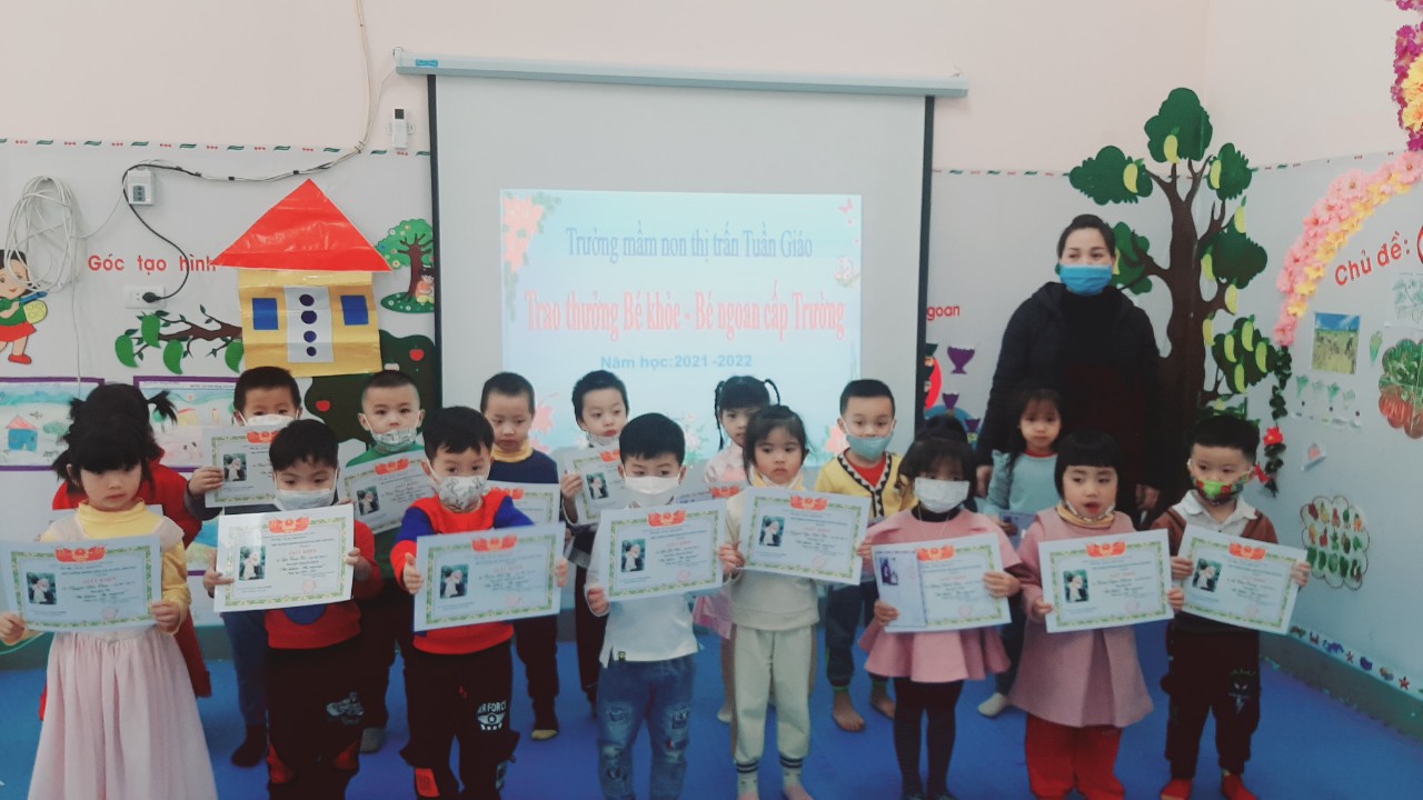 ( Hình ảnh các cháu tham gia phần thi năng khiếu)* Tồn tại:Một số ít học sinh còn dụt dè nhút nhát khi vào phòng thi 1. Kết quả hội thi:* Thi BKBNTổng số học sinh đăng ký dự thi: 227Số học sinh tham gia thi: 227 đạt 100%Trong đó: Đạt giải xuất sắc: 4 cháu Đạt giải nhất: 43 cháu Đạt giải nhì: 63 cháu Đạt giải ba: 64 cháu Đạt giải KK: 53 cháuMặc dù hội thi diễn ra trong thời gian dịch bệnh covid 19 ddang căng thẳng tuy nhiên hội thi “Bé khỏe bé ngoan” cấp trường năm học 2021 - 2022 đã thực hiện đúng văn bản hướng dẫn chỉ đạo của ngành trong việc nâng cao chất lượng giáo dục trẻ toàn diện. Đức trí, thể, mỹ và tình cảm xã hội Việc tổ chức bồi dưỡng cho học sinh và tuyên truyền cho phụ huynh học sinh phối kết hợp với nhà trường để chăm sóc nuôi dưỡng trẻ, để trường có số lượng học sinh tham dự thi đông và đủ điều kiện về sức khỏe và trí tuệ.Qua hội thi đánh giá công tác nuôi dưỡng chăm sóc giáo dục của nhà trường đạt kết quả rất cao.Cấp lãnh đạo, các ban ngành đoàn thể quan tâm hơn nữa đến các hoạt động của nhà trường và đặc biệt là sự chi đạo sát sao của phòng giáo dục. Sự phối kết hợp chặt chẽ của các bậc phụ huynh để nhà trường hoàn thành tốt nhiệm vụ năm học.
