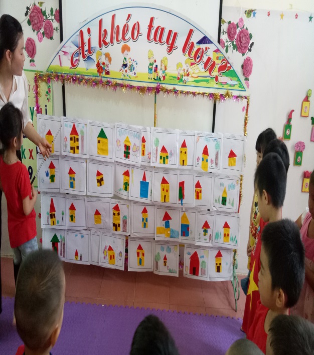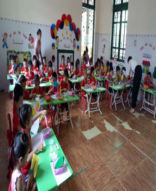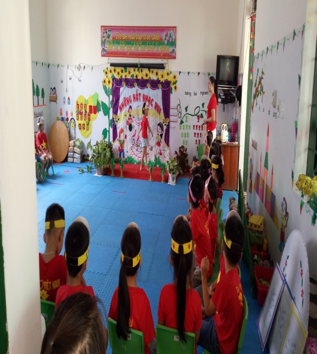 (Hình ảnh giáo viên tham gia thi giảng) Với lòng yêu nghề, mến trẻ thật sự tâm huyết nhiệt tình và có tinh thần trách nhiệm cao các cô luôn nỗ lực phấn đấu để hoàn thành tốt các vòng thi của mình. Các tiết dạy của giáo viên đều đầu tư trong hoạt động, chuẩn bị đồ dùng, tác phong sư phạm, biết sáng tạo và vận dụng linh hoạt các phương pháp dạy học theo quan điểm “Giáo dục lấy trẻ làm trung tâm ”. Trên tinh thần tự nguyệnkhông tạo áp lực cho giáo viên tham gia Hội thi. Đảm bảo tính trung thực, dân chủ, công khai, minh bạch, công bằng, khách quan và đảm bảo thực chất. Nhà trường đã có 12/28 giáo viên đăng ký tham dự Hội thi giáo viên dạy giỏi cấp trường. Nội dung thi được thực hiện chia làm 2 phần Phần thứ nhất: Giáo viên tham gia thi trình bày một biện pháp góp phần nâng cao chất lượng công tác chăm sóc, nuôi dưỡng, giáo dục trẻ em của cá nhân tại cơ sở giáo dục, nơi giáo viên đang làm việc. Thời lượng trình bày biện pháp không quá 30 phút, bao gồm cả thời gian Ban Giám khảo trao đổi. Biện pháp được lãnh đạo cơ sở giáo dục xác nhận áp dụng hiệu quả và lần đầu được dùng để đăng ký thi giáo viên dạy giỏi cơ sở giáo dục mầm non và chưa được dùng để xét duyệt thành tích khen thưởng cá nhân trước đó. Phần thứ hai: Thực hành một hoạt động giáo dục cụ thể theo kế hoạch giáo dục tại thời điểm diễn ra Hội thi. Hoạt động giáo dục tham gia Hội thi được tổ chức lần đầu tại nhóm, lớp với nguyên trạng số lượng trẻ em của nhóm, lớp đó. Giáo viên được thông báo và có thời gian chuẩn bị cho hoạt động giáo dục trong thời gian không quá 02 ngày trước thời điểm thi. Các giáo viên dự thi đã tích cực chuẩn bị bài, sử dụng các phương tiện, thiết bị CNTT trong dạy học, đầu tư nội dung bài dạy… Hội thi Giáo viên dạy giỏi cấp trường năm học 2021-2022 đã diễn ra thành công tốt đẹp. Kết quả: có 12/12 giáo viên tham gia dự thi kết quả đạt Giáo viên dạy giỏi cấp trường: 8/12 đạt 66,7%. Giáo viên chuyên môn khá: 4/12 đạt 33,3%. Có thể nói Hội thi giáo viên dạy giỏi cấp trường lần này là cơ hội tốt để các cô giáo rèn đức, luyện tài, đổi mới phương pháp dạy học, nâng cao chất lượng giờ lên lớp. Qua đó khuyến khích các giáo viên tiếp tục đổi mới phương pháp chăm sóc giáo dục trẻ nhằm nâng cao chất lượng giáo dục. Hội thi giáo viên dạy giỏi cấp trường năm học 2021 - 2022 đã kết thúc thành công tốt đẹp để lại nhiều ấn tượng sâu sắc trong công tác tổ chức Hội thi. Có được sự thành công đó là nhờ sự quan tâm sâu sắc của ban giám hiệu nhà trường và sự đồng tình của phụ huynh học sinh, giáo viên trong toàn trường.