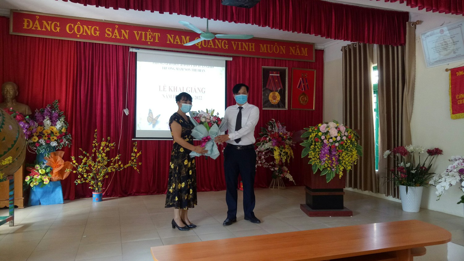 Vâng! Một Lễ khai giảng năm học thật đặc biệt, trong phòng chỉ có các cô, 1 số bạn, không có cờ hoa rực rỡ, không có những hàng cây rợp bóng sân trường ấy vậy mà sao vẫn rất trang nghiêm, xúc động và háo hức đến lạ kỳ. Có lẽ bởi cả Dân tộc ta đều thấu hiểu mỗi chúng ta đang phải tham gia cuộc chiến vô cùng khó khăn, khốc liệt, một cuộc chiến với kẻ thù vô hình covid-19.