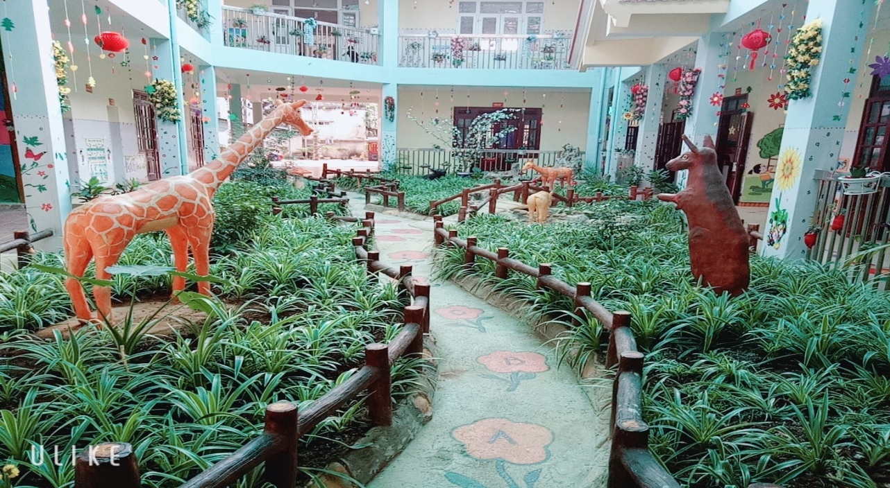 Hình ảnh môi trường ngoài lớp họcCó thể nói việc xây dựng môi trường giáo dục lấy trẻ làm trung tâm là thực sự cần thiết và rất quan trọng. Thông qua chơi, nhân cách của trẻ được hình thành và phát triển toàn diện. Một môi trường sạch sẽ, an toàn, có sự bố trí khu vực chơi và học trong lớp và ngoài trời phù hợp, thuận tiện có ý nghĩa to lớn không chỉ đối với sự phát triển thể chất của trẻ, mà còn thỏa mãn nhu cầu nhận thức, mở rộng hiểu biết của trẻ, kích thích trẻ hoạt động tích cực, sáng tạo. Xây dựng tốt môi trường giáo dục trong trường mầm non là phương tiện, điều kiện để trẻ phát triển toàn diện về thể chất, ngôn ngữ, trí tuệ, khả năng thẩm mỹ, tình cảm và kỹ năng xã hội, tạo tiền đề vững chắc cho trẻ mầm non vào học lớp 1; phù hợp với phương châm của Bộ Giáo dục và Đào tạo đã chỉ đạo: "Học bằng chơi, chơi mà học".