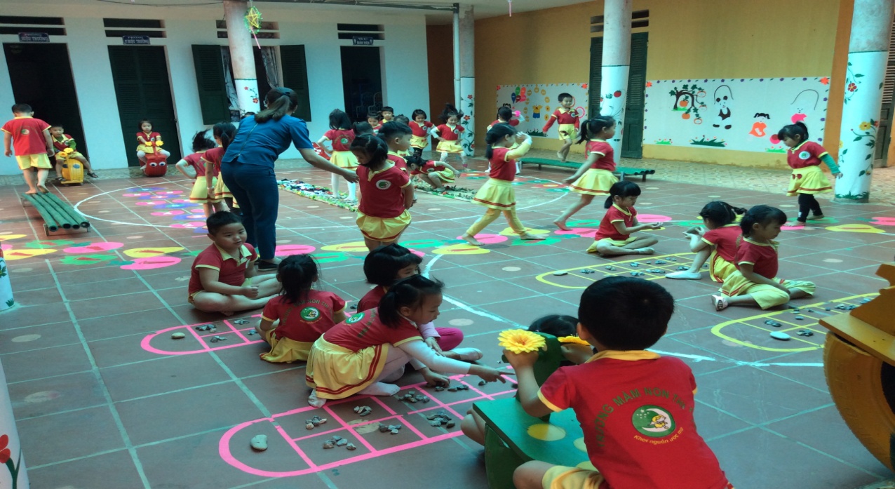 Khác với những hoạt động khám phá trước kia chỉ tổ chức trong lớp học, hiện nay những hoạt động lên lớp của giáo viên đã có nhiều thay đổi, linh hoạt và phong phú hơn. Trẻ được học ngay tại sân trường, khám phá những hiện tượng, sự vật có ngay trong khuôn viên của nhà trường, như hoạt động khám phá về nước, sỏi, cát - giáo viên sử dụng ngay khu vui chơi cát sỏi, trẻ học được qua chơi, thực hành, quan sát mình làm, bạn làm.