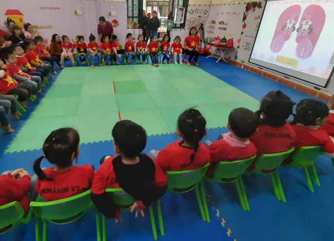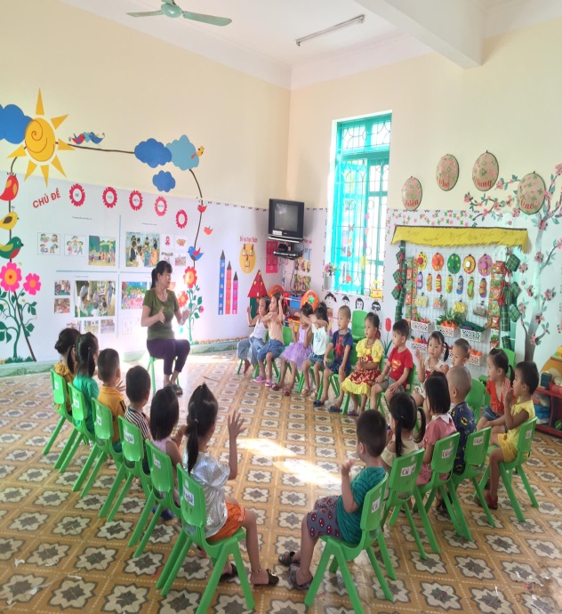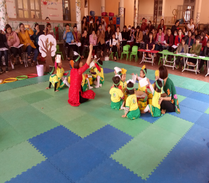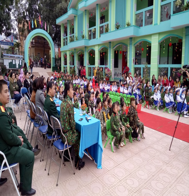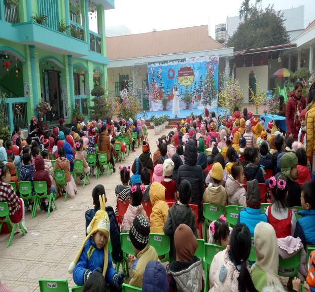 ( Hình ảnh tổ chức lẽ noen và chương trình chiến sĩ tí hon)Chú trọng xây dựng đội ngũ có tinh thần đoàn kết mạnh dạn tự tin sáng tạo tăng cường sức khỏe ham hiểu biết cầu thị... Tổ chức nhiều hoạt động của cô và trò nhằm nâng cao chất lượng toàn diện cho trẻ như: Tổ chức các chuyên đề cấp trường cấp huyện từ đó chuyên môn của các cô giáo ngày càng vững vàng. 100% giáo viên trong nhà trường thực hiện đúng quy chế chuyên môn, soạn giảng đúng tiến độ chương trình, có giáo án đầy đủ được duyệt qua chuyên môn tổ, chuyên môn trường, có đồ dùng trực quan phục vụ cho giờ dạy trước khi lên lớp. Tham gia tích cực các đợt thao giảng vòng tổ, vòng trường, tham gia hội thi giáo viên dạy giỏi cấp huyện, cấp tỉnh.